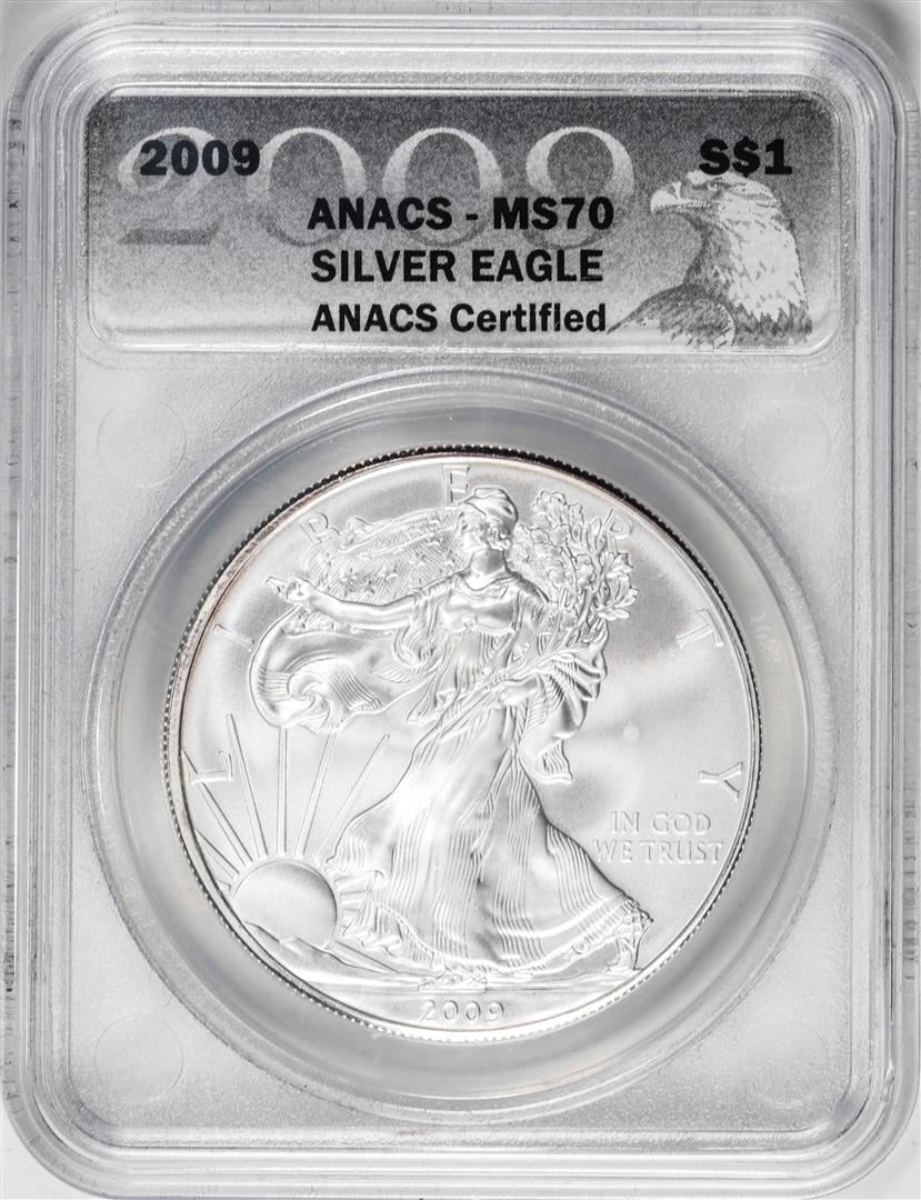 One 2009 $1 American Silver Eagle Coin ANACS MS70. ANACS Certified.