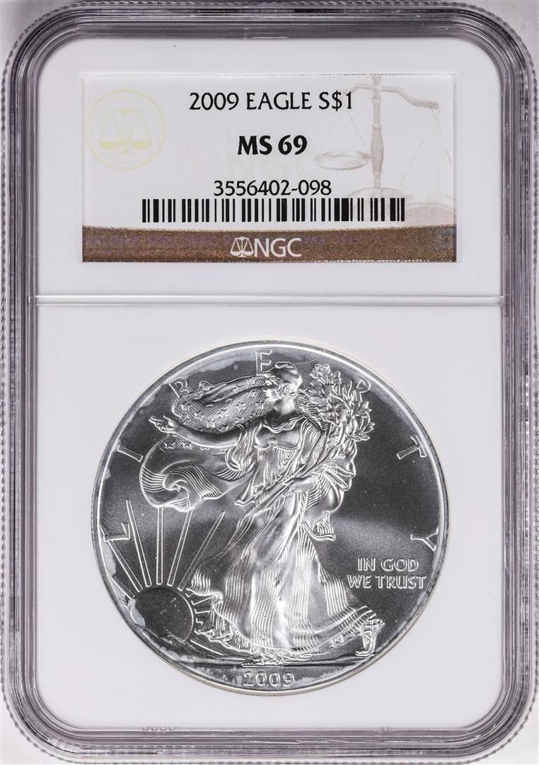 One 2009 $1 American Silver Eagle Coin NGC MS69. NGC Certified.