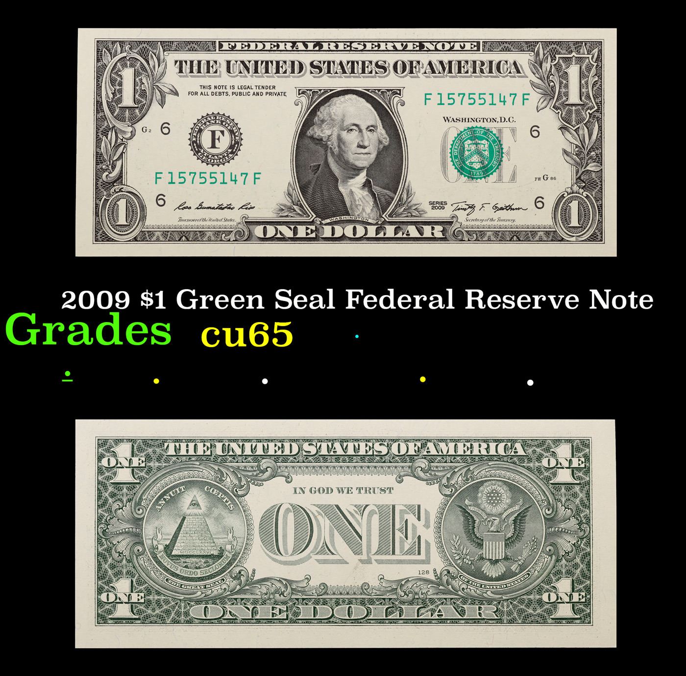 2009 $1 Green Seal Federal Reserve Note Grades Gem CU.