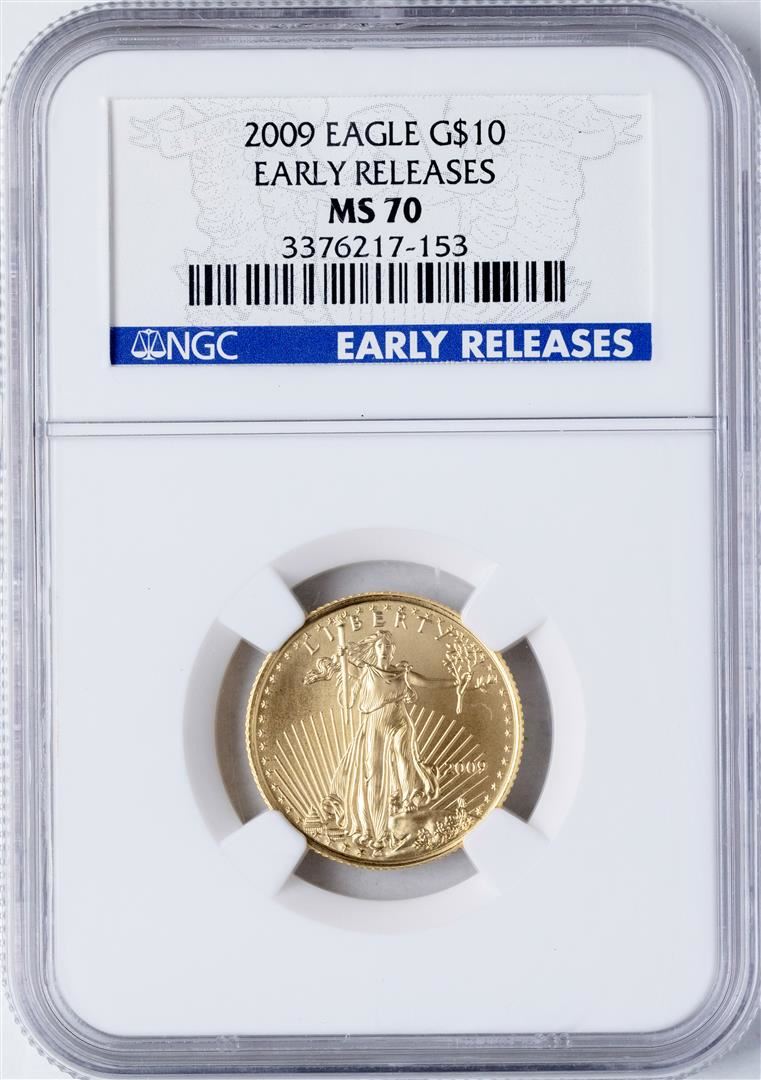 One 2009 $10 American Gold Eagle Coin NGC MS70 Early Releases. NGC Certified.