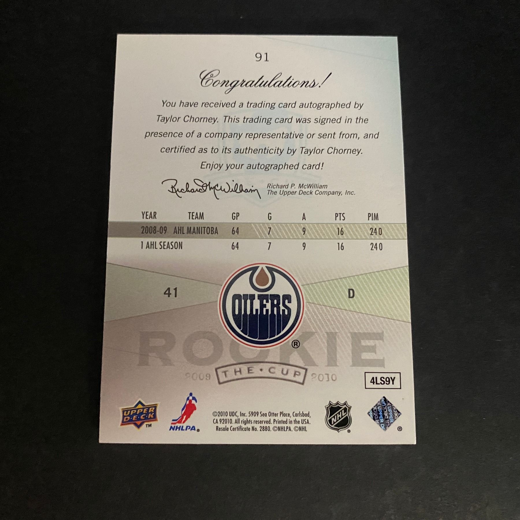 2009/10 UPPER DECK THE CUP ROOKIE AUTOGRAPH CARD TAYLOR CHORNEY #D/199