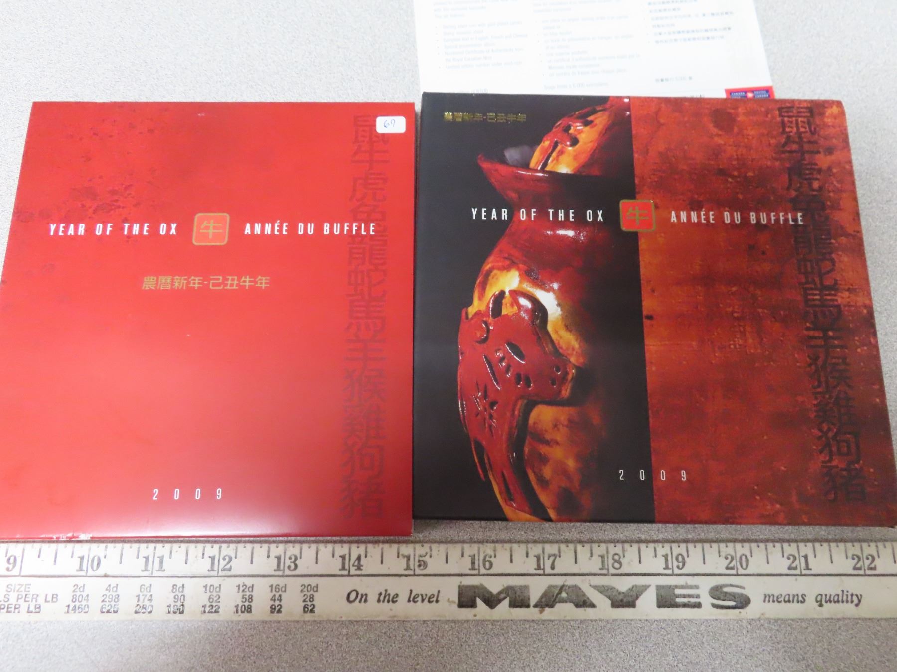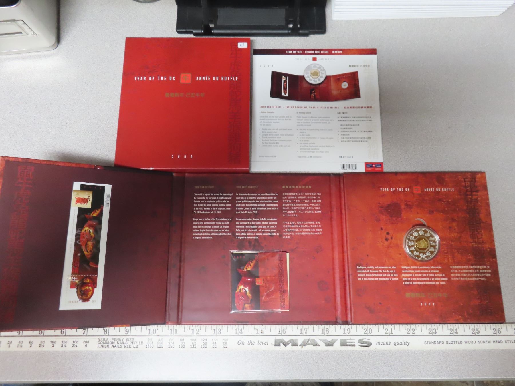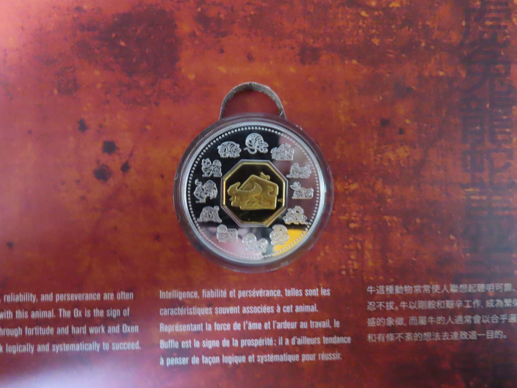 2009 $15 Lunar Calendar Year of the Ox. Includes Souvenir Stamp Sheet. Gold Plated Cameo. Proof with Ultra Heavy Cameo. Sterling Silver. Housed in its original Royal Canadian Mint case & box of issue plus Certificate of Authenticity.
