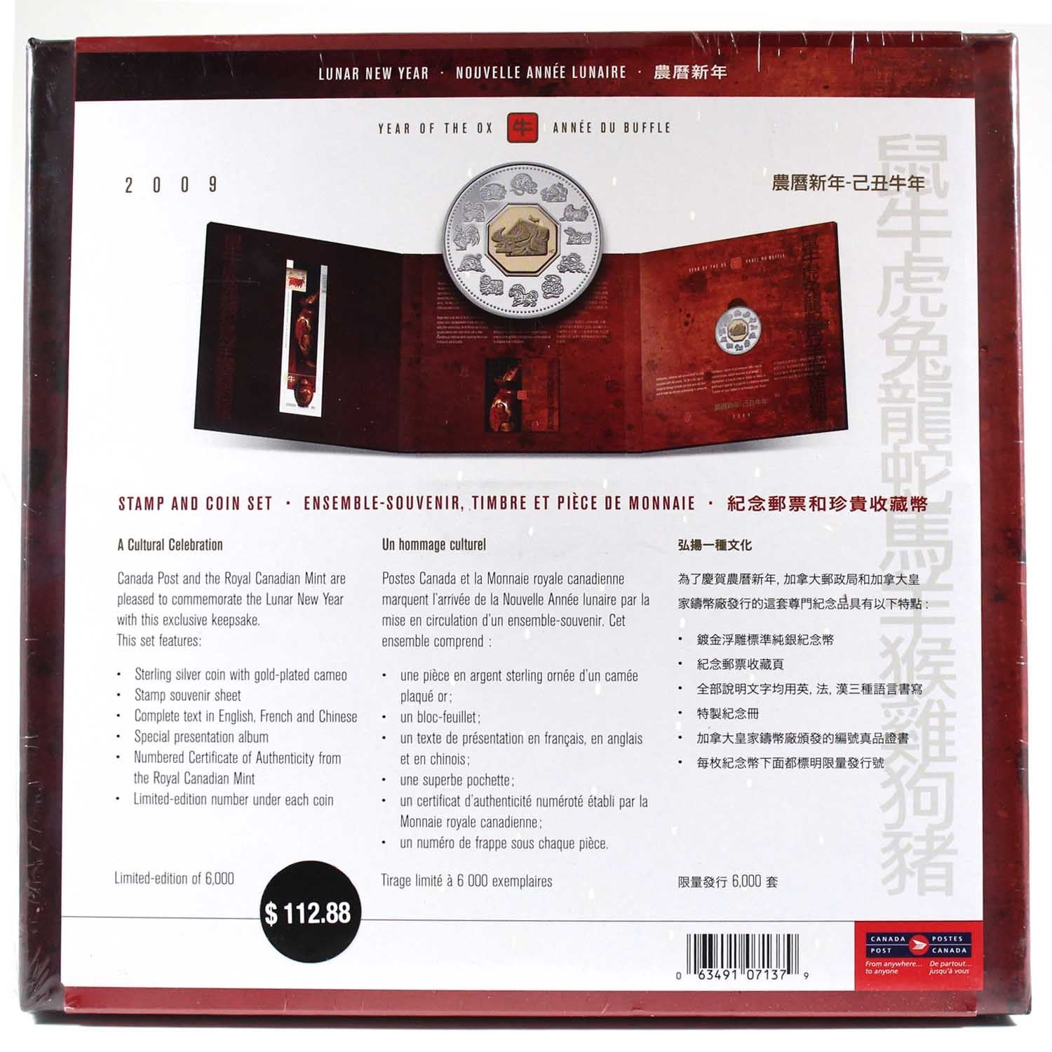2009 $15 Lunar Year of the Ox Silver Coin and Stamp Set Issued by Canada Post. Still Sealed.