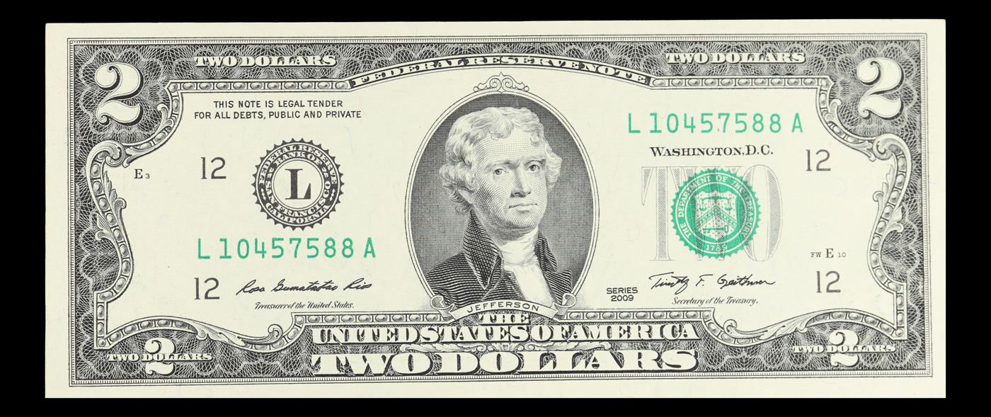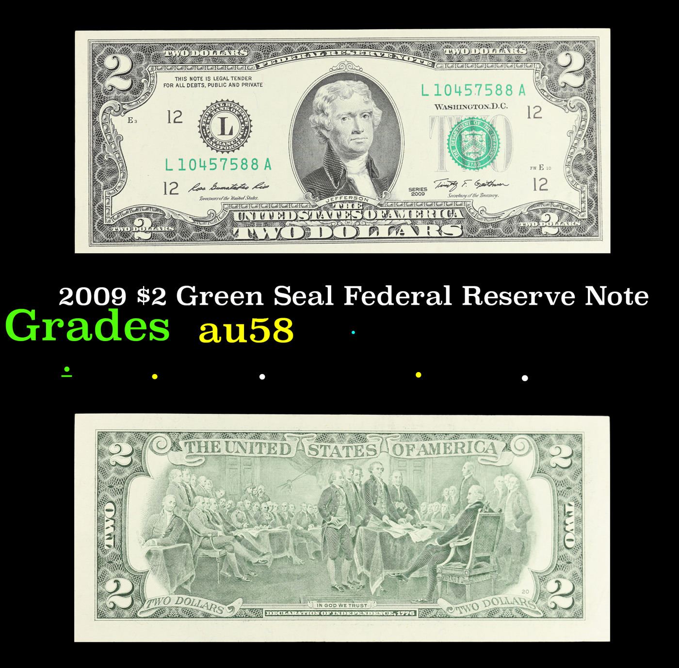 2009 $2 Green Seal Federal Reserve Note Grades Choice AU/BU Slider.