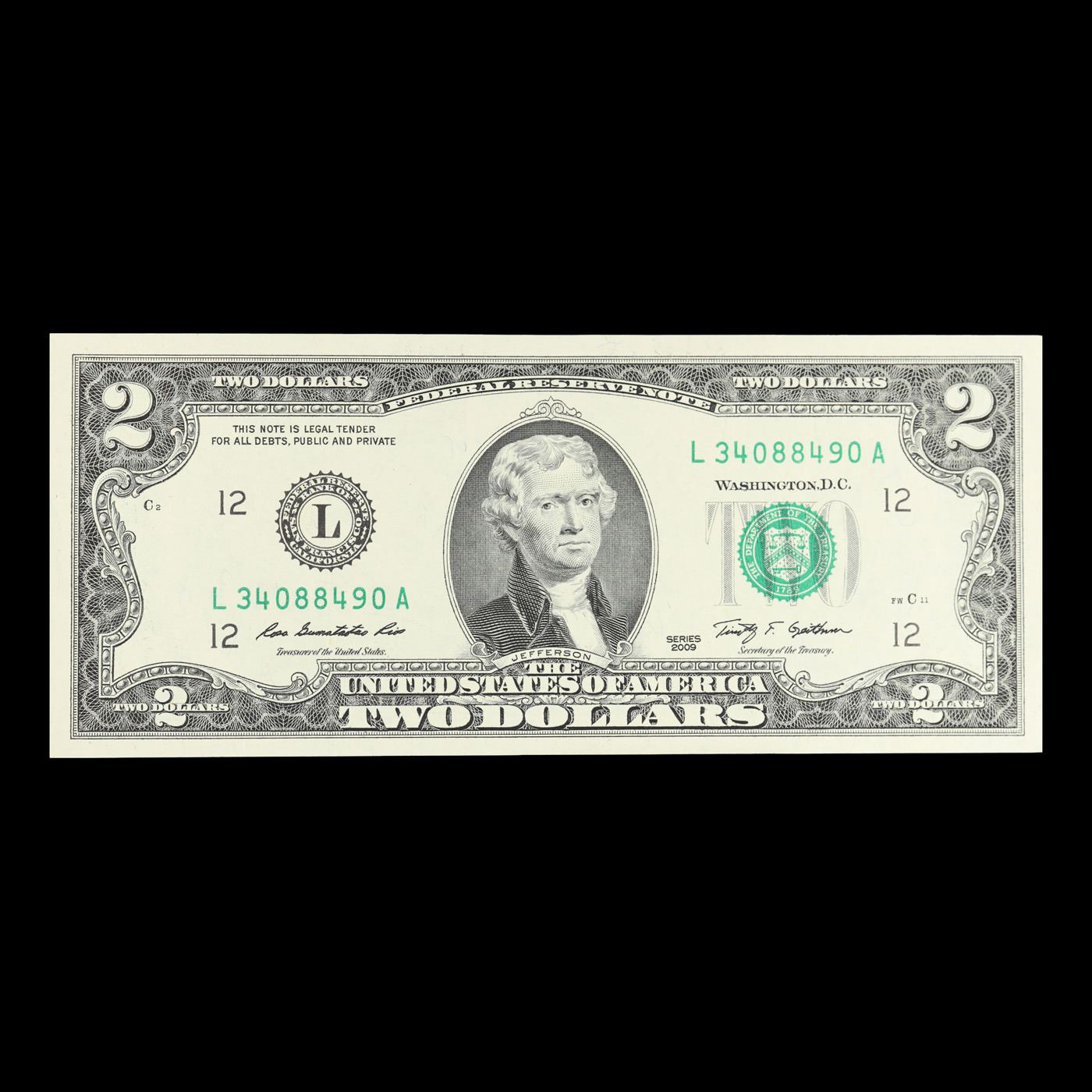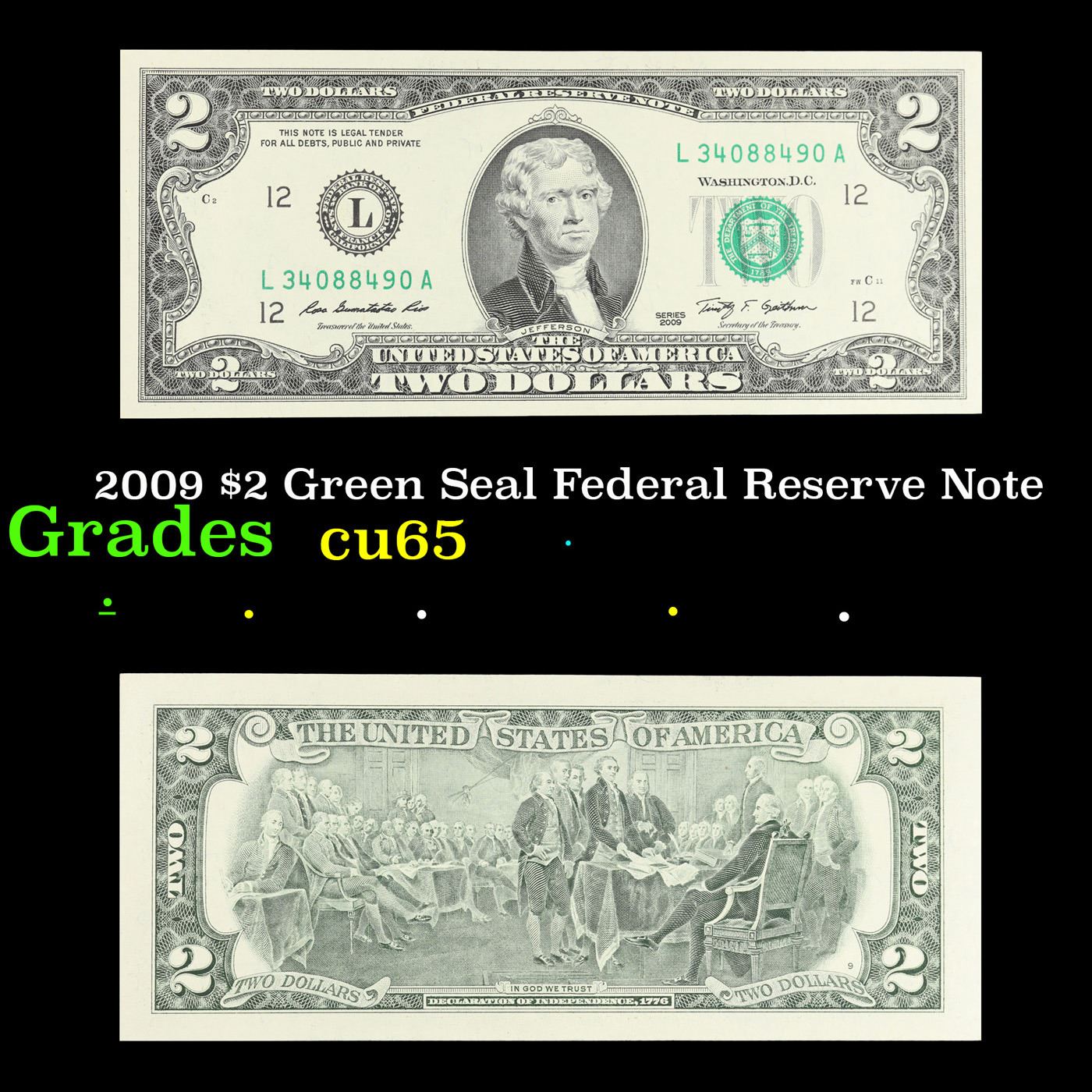 2009 $2 Green Seal Federal Reserve Note Grades Gem CU.