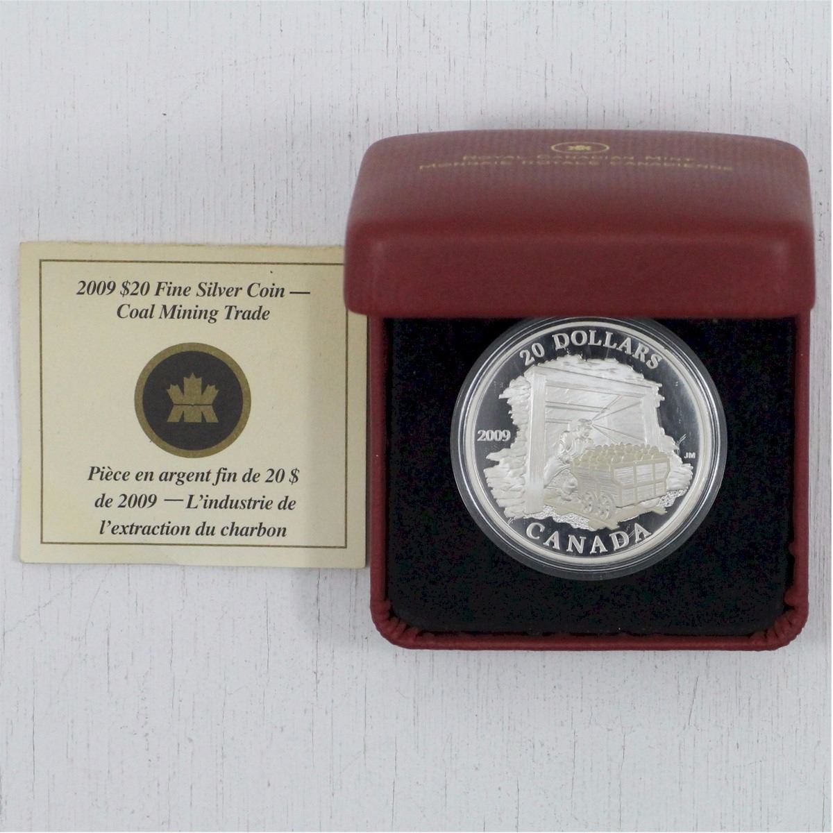 2009 $20 Coal Mining Trade Silver Coin issued by the RCM. (Tax Exempt). Coin comes Encapsulated with Display Box and certificate. (discoloured certificate). Buyers Premium will be added on all items as per our terms of sale. We accept Paypal, Credit Card, E-Transfer Payments, Cheque or Money Orders (there is an additional 3% fee for using Paypal or Credit Card). All invoices will be emailed immediately following the auction, please contact us if you would like to pay by credit card or receive a new revised lower total for mailing in payment or sending an e-transfer (3% discount). All Items Are Sold "AS IS", no returns