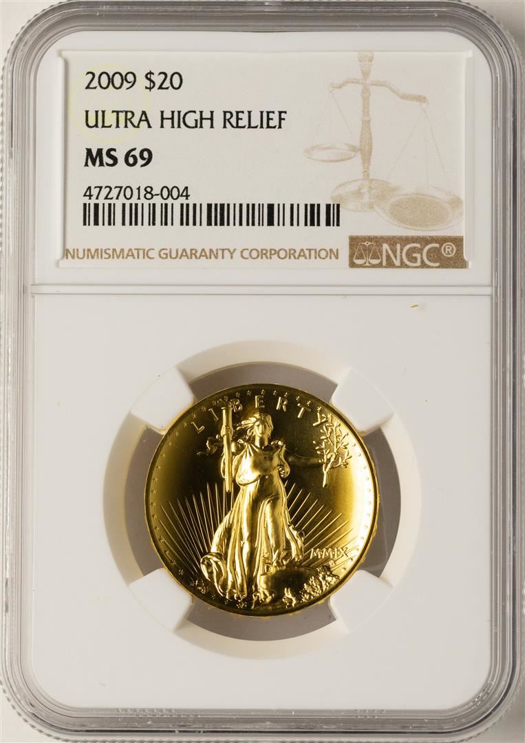 One 2009 $20 Ultra High Relief Double Eagle Gold Coin NGC MS69. NGC Certified.