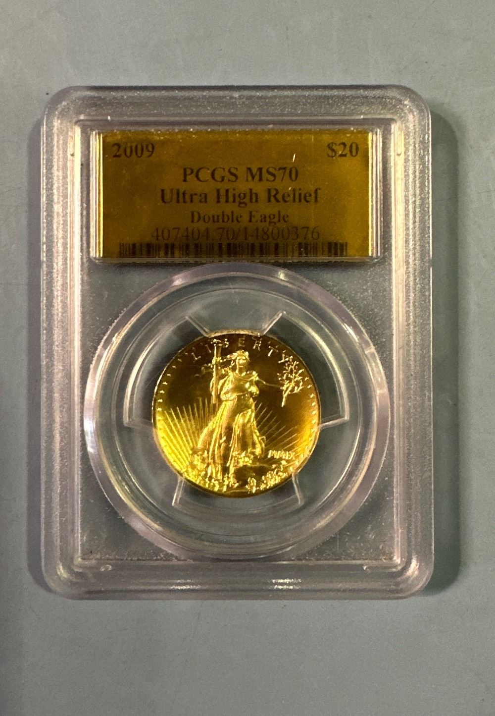 2009 $20 Ultra High Relief Gold Coin PCGS MS70