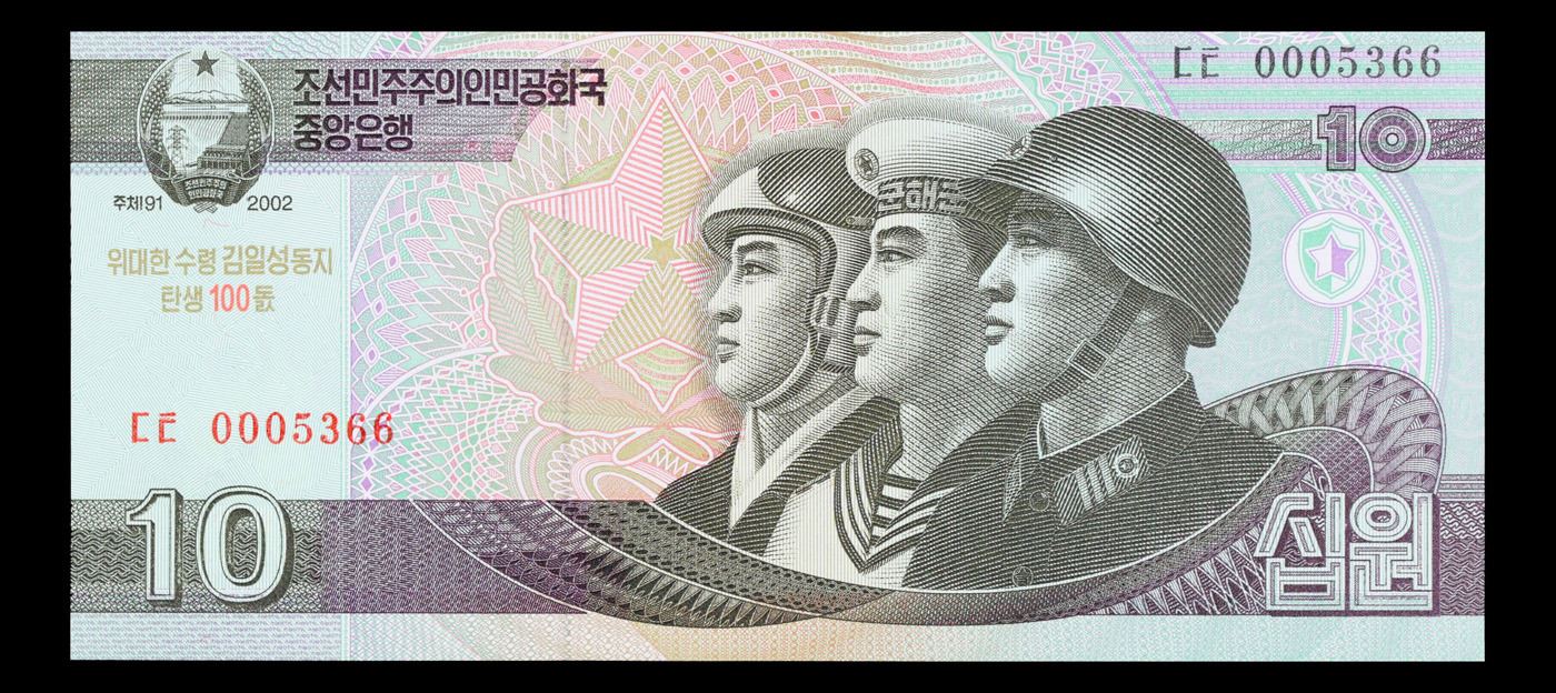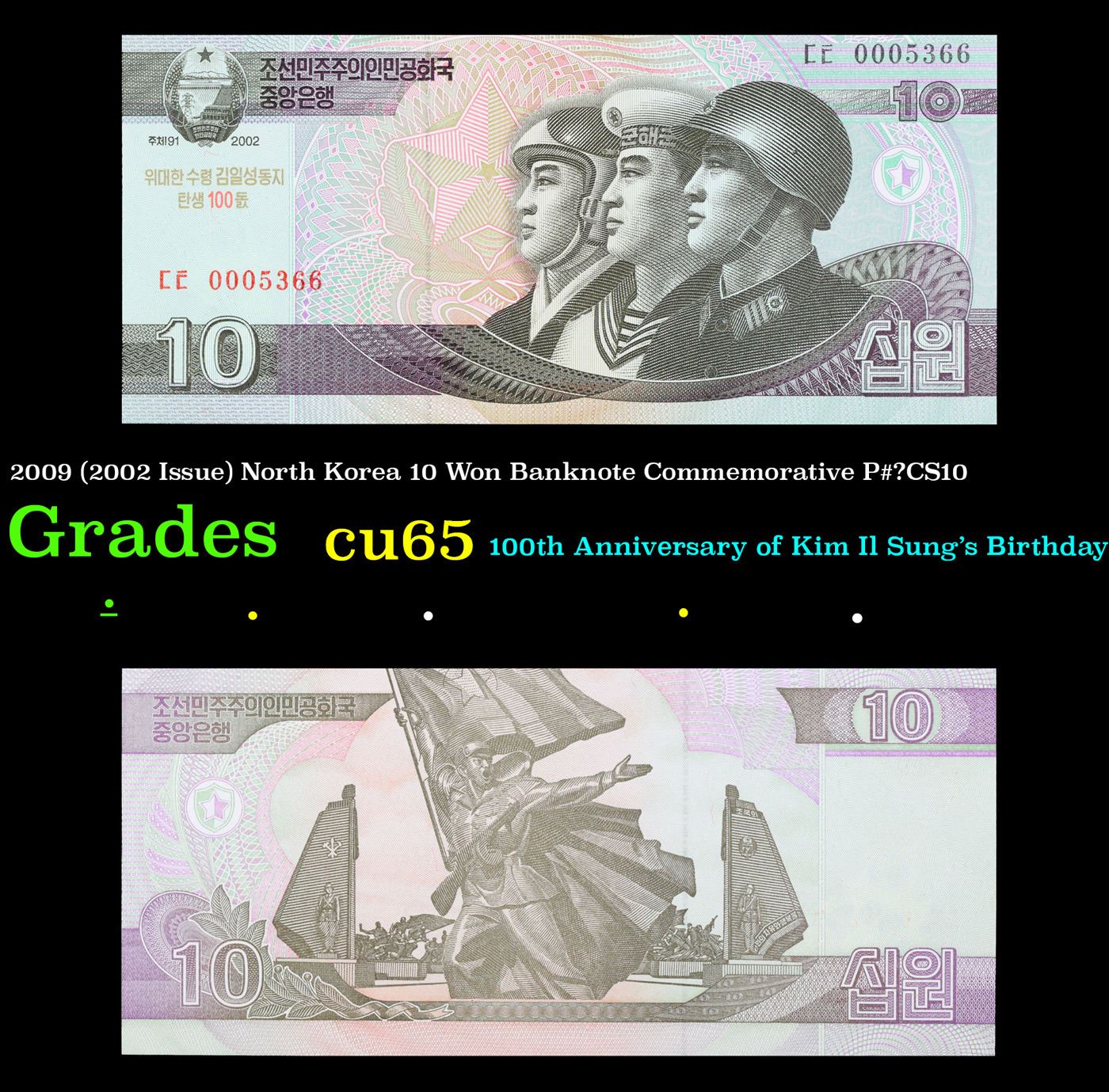 2009 (2002 Issue) North Korea 10 Won Banknote Commemorative P#?CS10 Grades Gem CU.