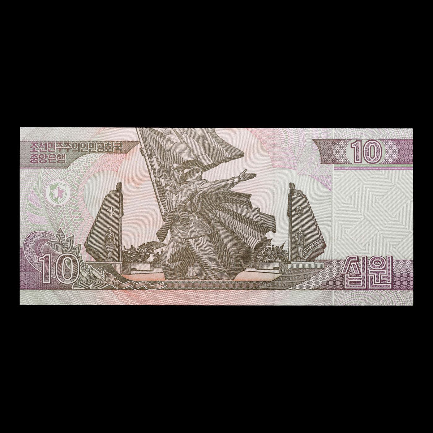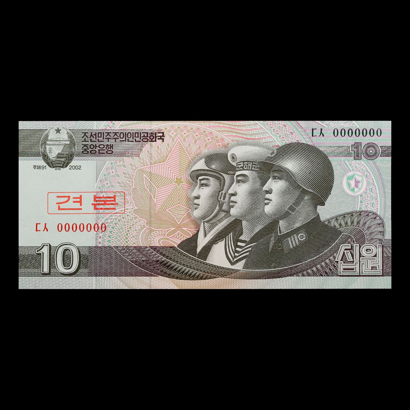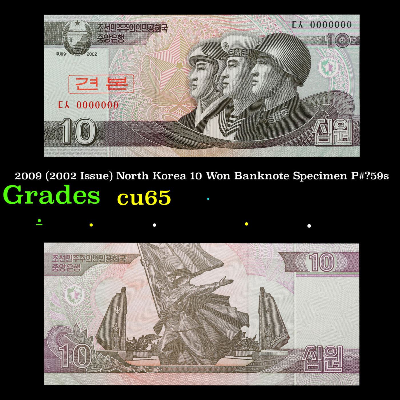 2009 (2002 Issue) North Korea 10 Won Banknote Specimen P#_59s Grades Gem CU.