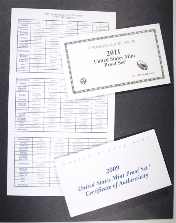 2009, 2010, and 2011 Proof Sets in Original Packaging. ESTIMATE $100 - $125.
