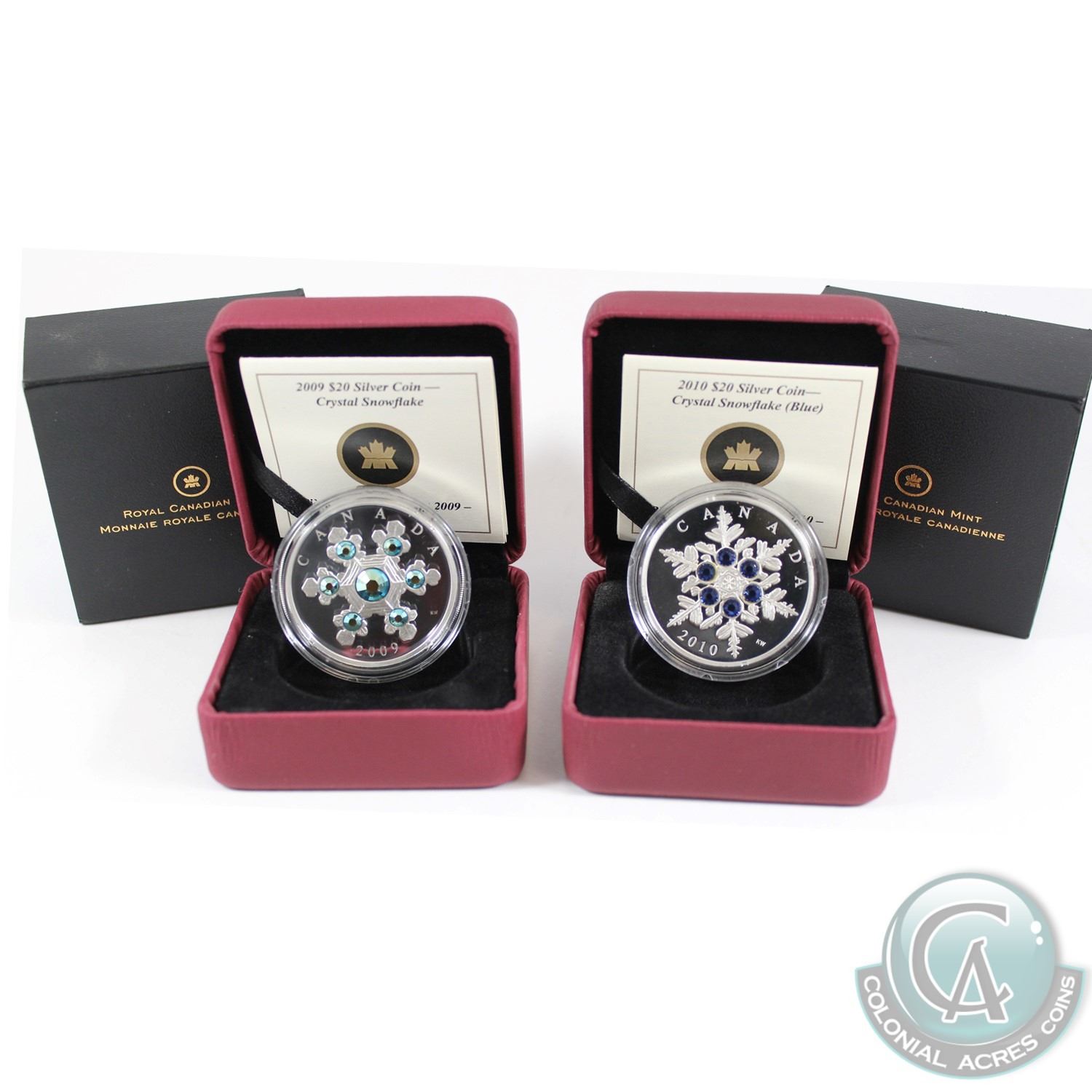 2009 & 2010 Canada $20 Blue Crystal Snowflake Fine Silver Coins. 2pcs (TAX Exempt)