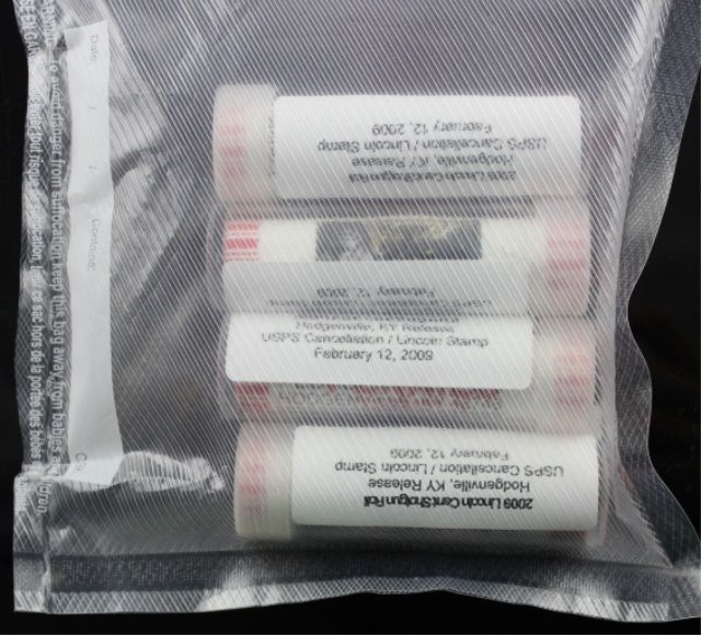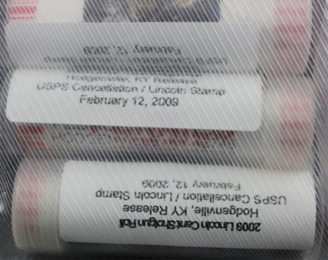 Up for auction is four 2009 Lincoln cent birthplace four shotgun roll from Hodgenville, Ky release. each roll are in one sleeve and have never been opened or tampered with. Great addition to any collection. Each roll has a cancelled Lincoln stamp from USPS.