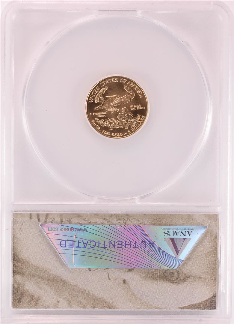 One 2009 $5 American Gold Eagle Coin ANACS MS70 First Strike. ANACS Certified.