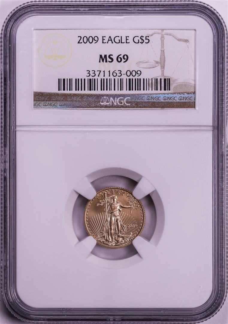 One 2009 $5 American Gold Eagle Coin NGC MS69. NGC Certified.