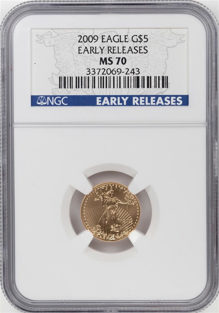 One 2009 $5 American Gold Eagle Coin NGC MS70 Early Releases. NGC Certified.
