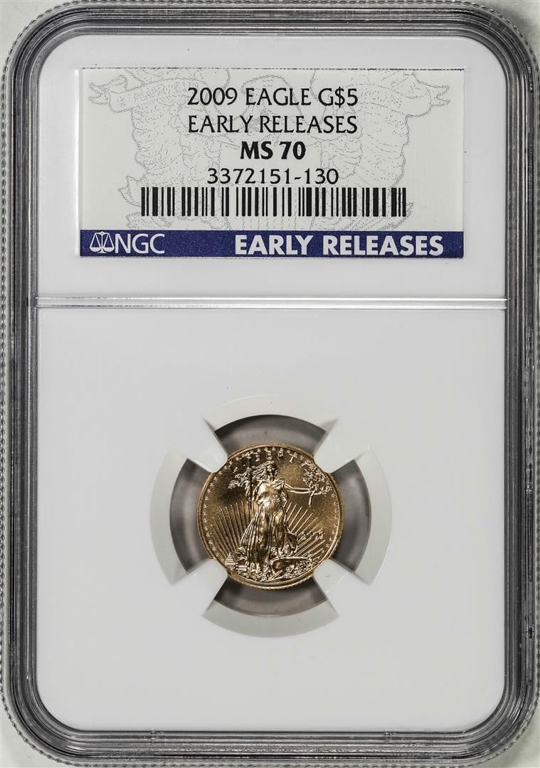 One 2009 $5 American Gold Eagle Coin NGC MS70 Early Releases. NGC Certified.