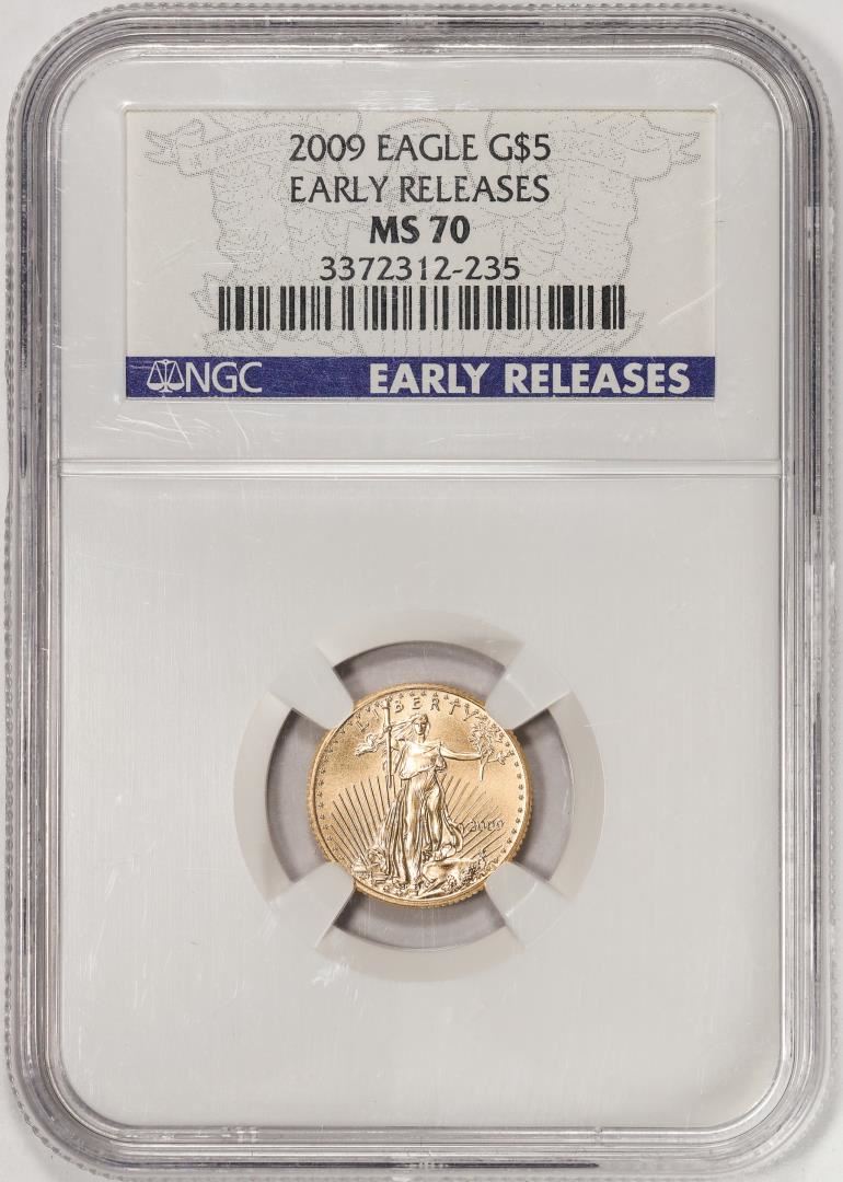One 2009 $5 American Gold Eagle Coin NGC MS70 Early Releases. NGC Certified.
