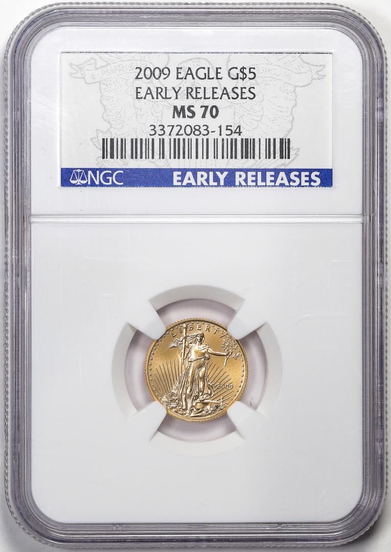 One 2009 $5 American Gold Eagle Coin NGC MS70 Early Releases. NGC Certified.