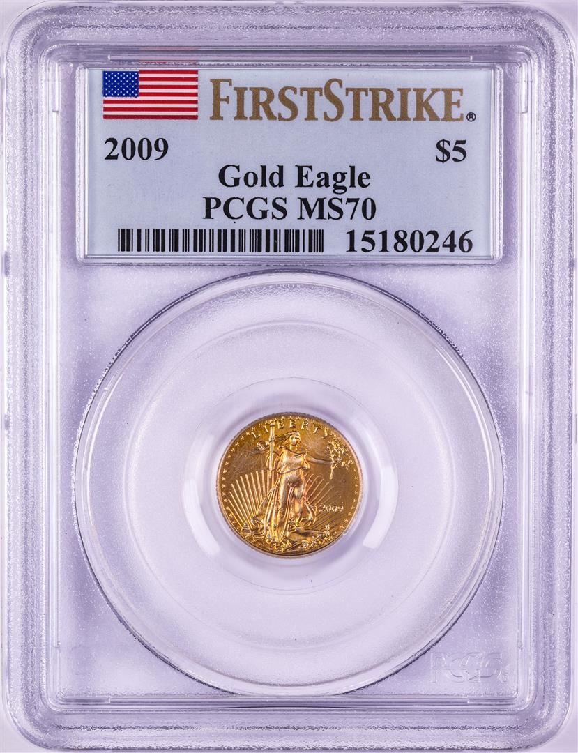 One 2009 $5 American Gold Eagle Coin PCGS MS70 First Strike. PCGS Graded.