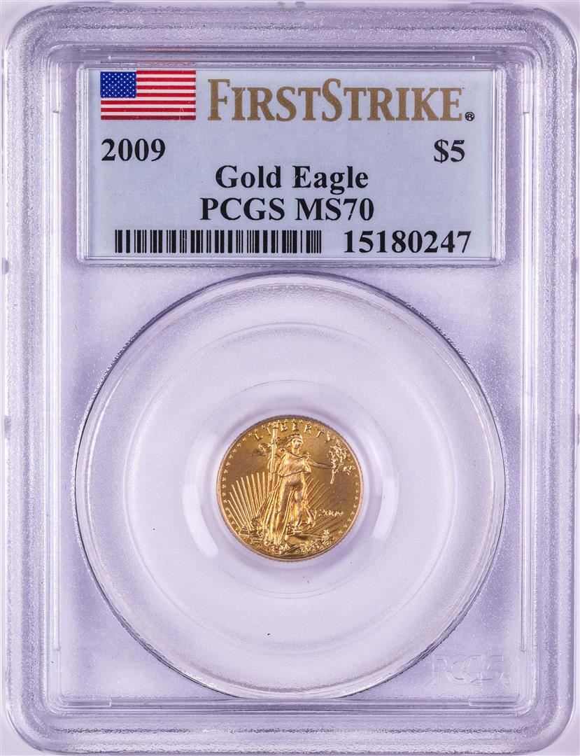 One 2009 $5 American Gold Eagle Coin PCGS MS70 First Strike. PCGS Graded.