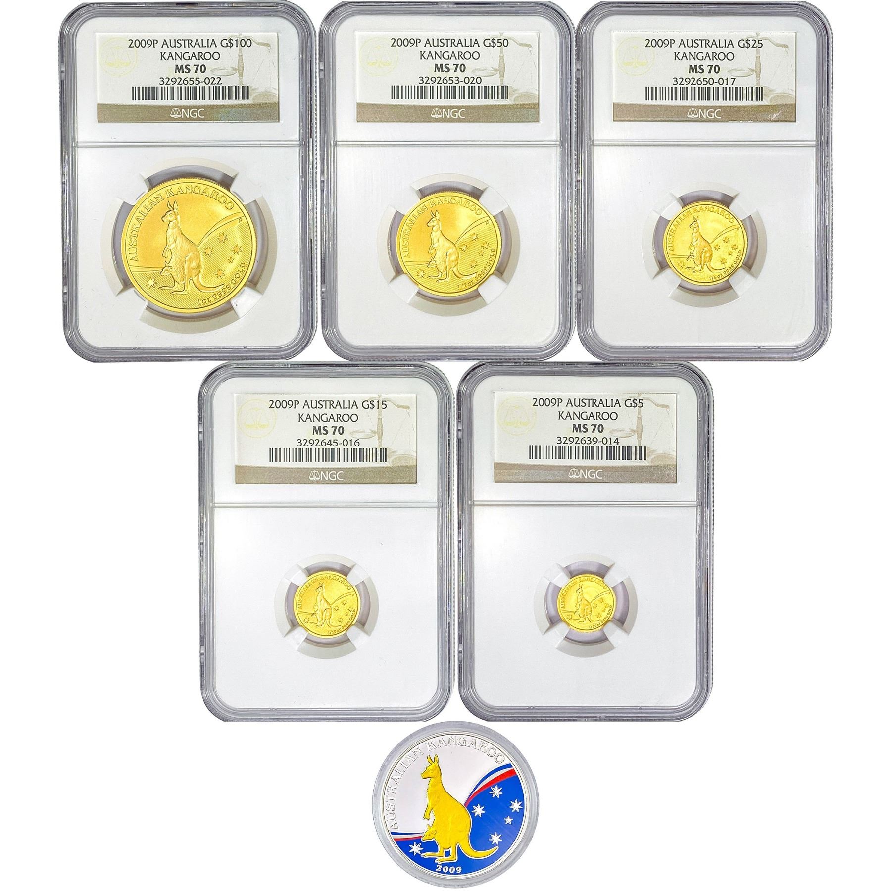 2009 5PC 2.45oz Gold Kangaroo Set w/ 1oz SlV NGC M