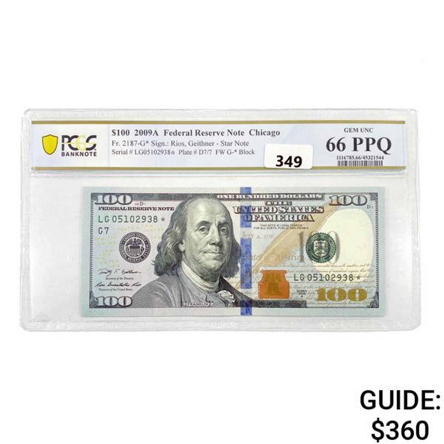 2009-A $100 Star Fes Res Note PCGS GEM UNC 66 PPQ
