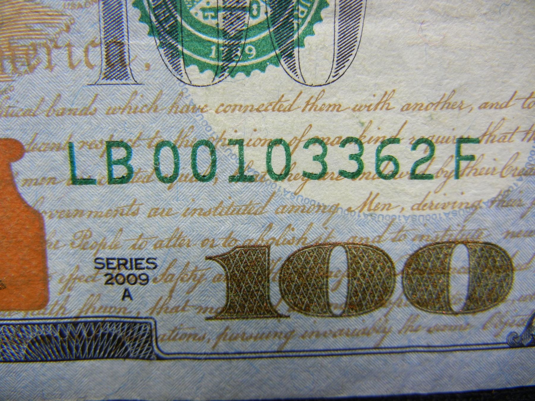 2009 A Low Serial Number One Hundred Dollar Note Serial Number: LB00103362F