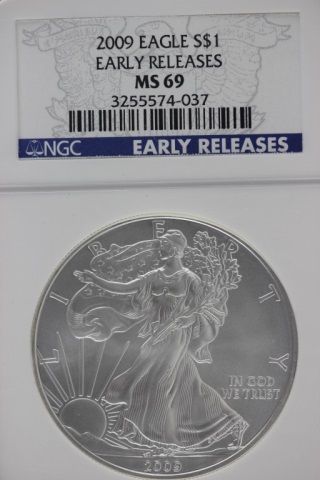 This wonderful coin is a 2009 American Silver Eagle. This an early release and has been graded MS 69 by NGC. This coin is made of .999 pure silver and would make a fantastic addition to any collection.
