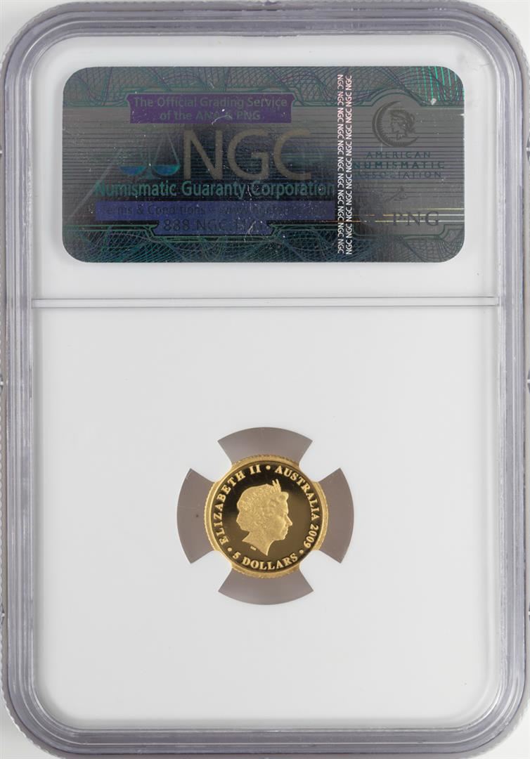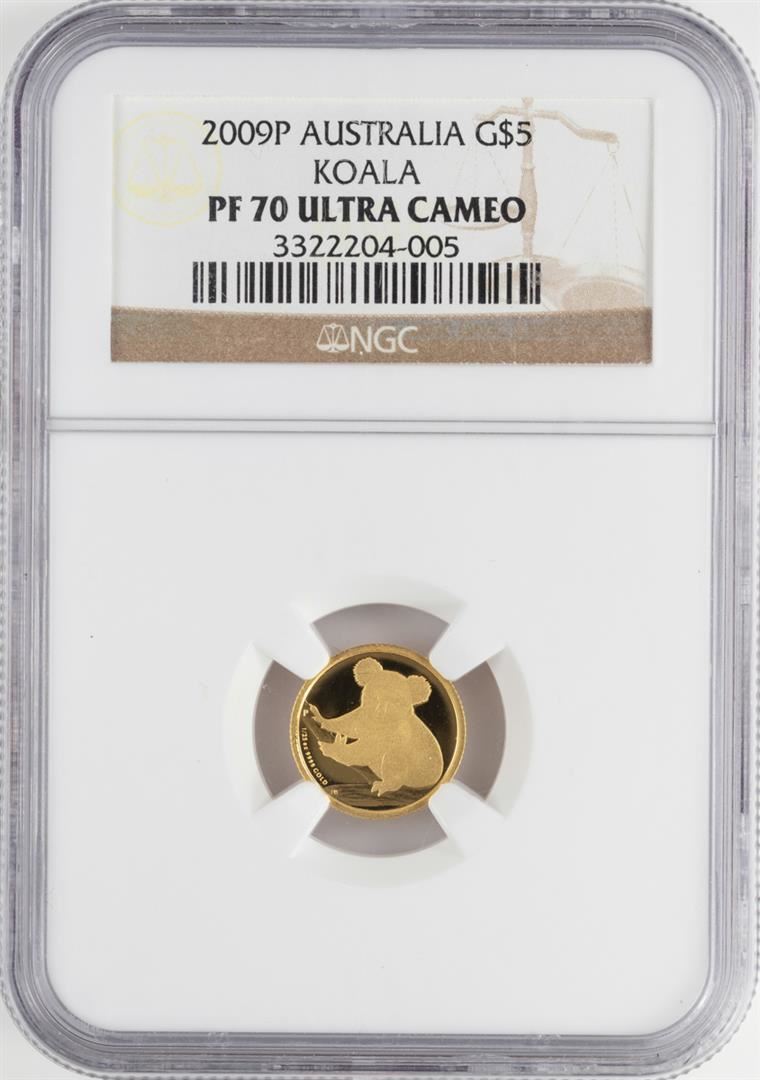 One 2009 Australia $5 Proof Koala Gold Coin NGC PF70 Ultra Cameo. NGC Certified.