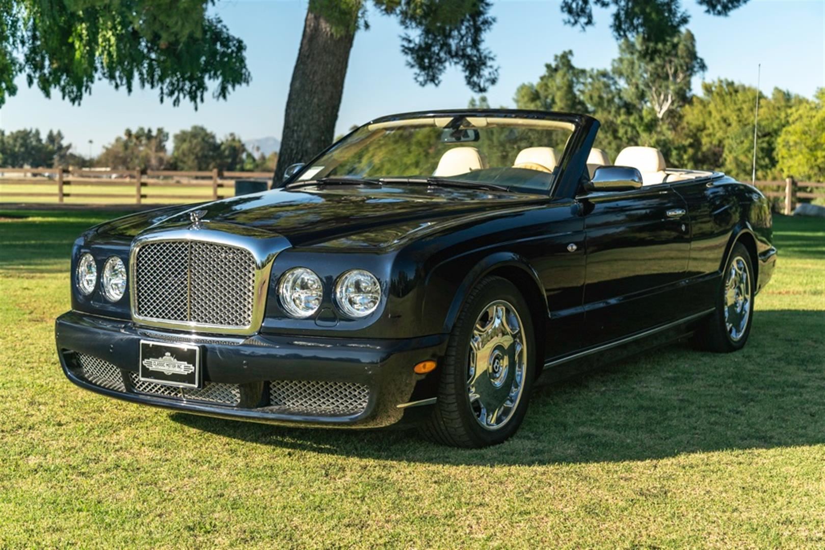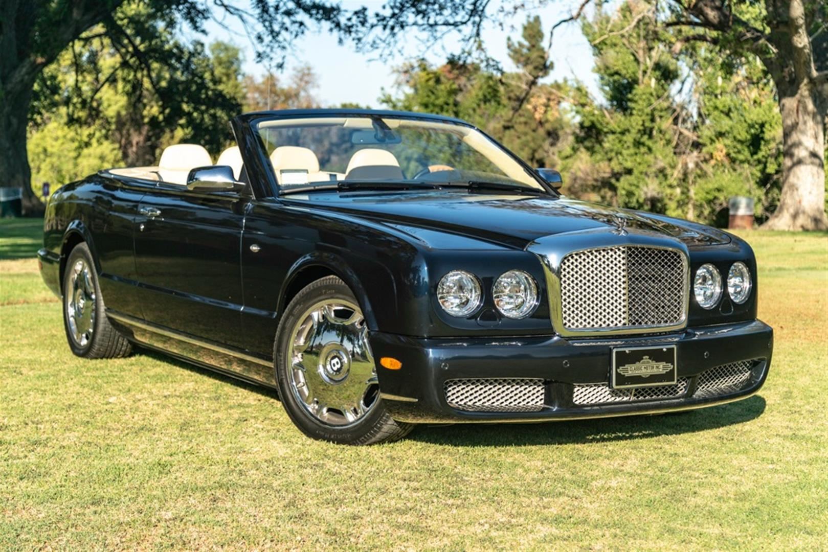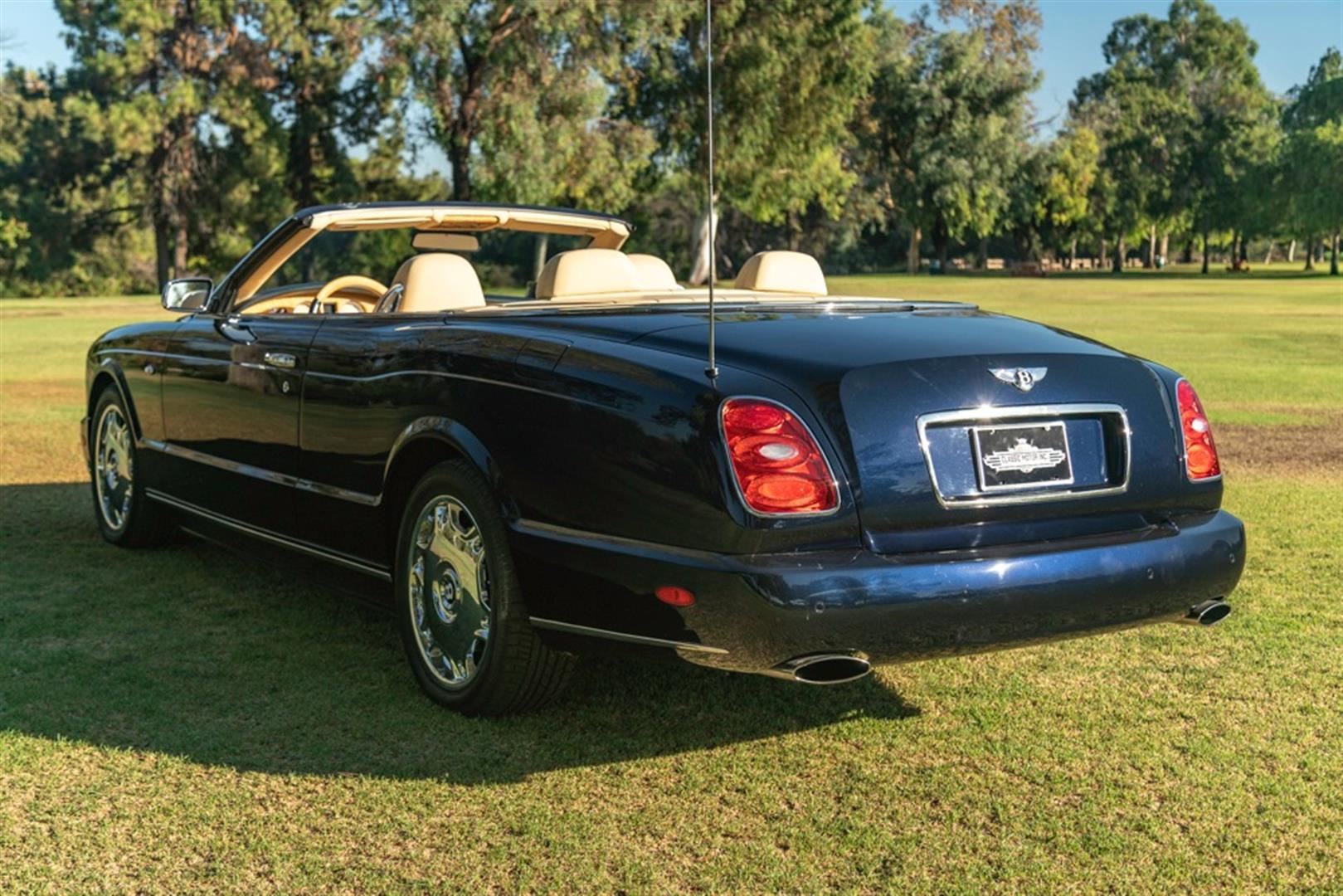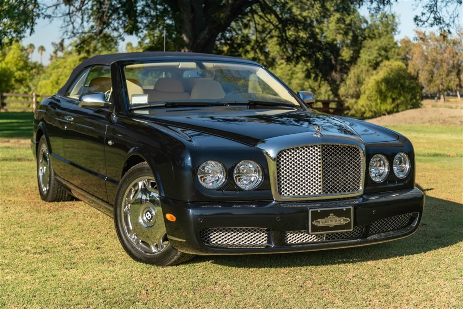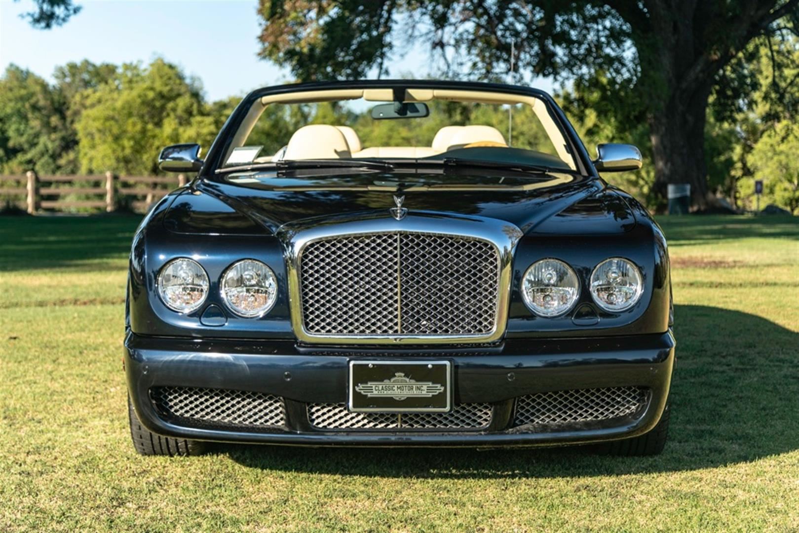 Be the envy of your neighborhood in this beautiful 2009 Bentley Azure with only 24,633 original miles. Black Sapphire Metallic exterior with Magnolia leather interior and matching dark blue top. Well optioned Azure with wood and leather steering wheel, stainless steel Matrix mesh grill, chromed mirror caps, chromed radiator shell, 19" 6 twin spoke chrome wheels, Navigation, park sensors front and rear, manual books, remotes, tools, original MSRP was $351,325! This 2009 Azure shows wonderfully, drives excellent and is sure to please.