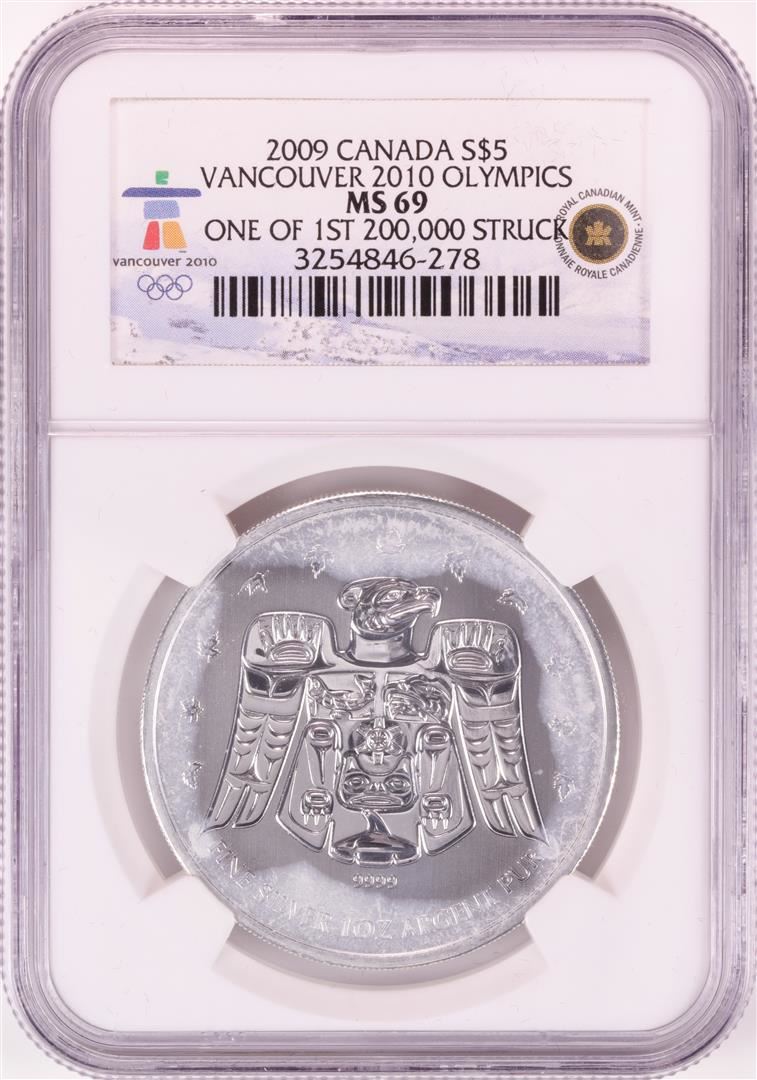 2009 Canada $5 Maple Leaf Vancouver Olympics Silver Coin NGC MS69