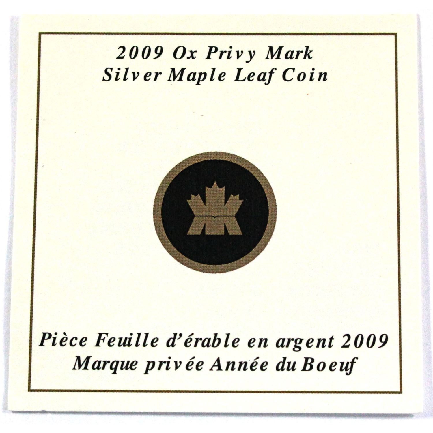 2009 Canada Ox Privy Mark 1oz .9999 Fine Silver Maple Leaf in Original Sealed Mint Plastic with COA. (TAX Exempt)