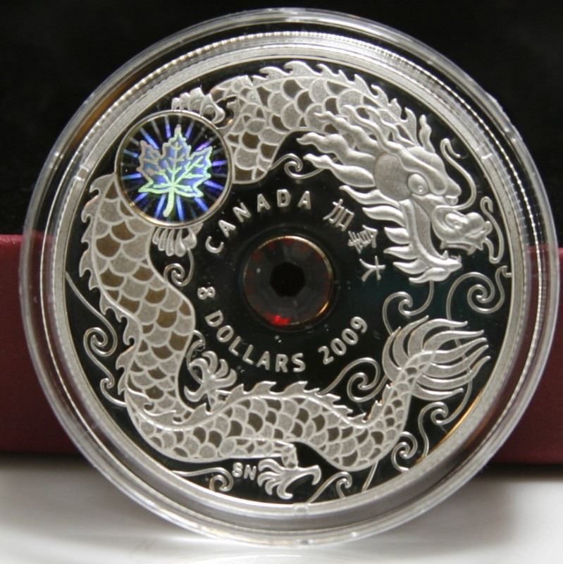 2009 Canadian Sterling Silver $8 Coin - Maple of Wisdom - With Red Swarovski Element