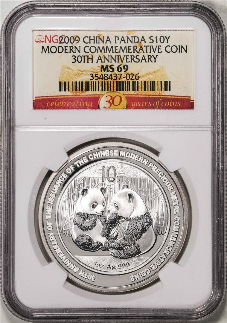 2009 China 10 Yuan Silver Panda Coin NGC MS69 Early Releases 30th Anniversary