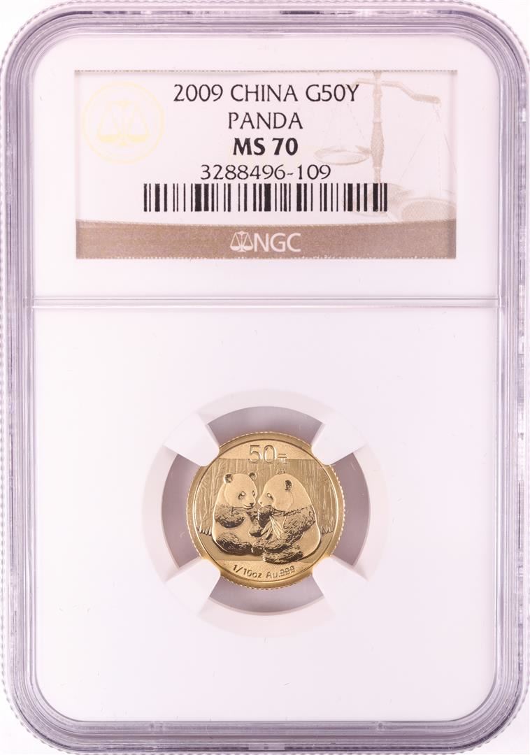 One 2009 China 50 Yuan 1/10 oz Gold Panda Coin NGC MS70. NGC Certified.