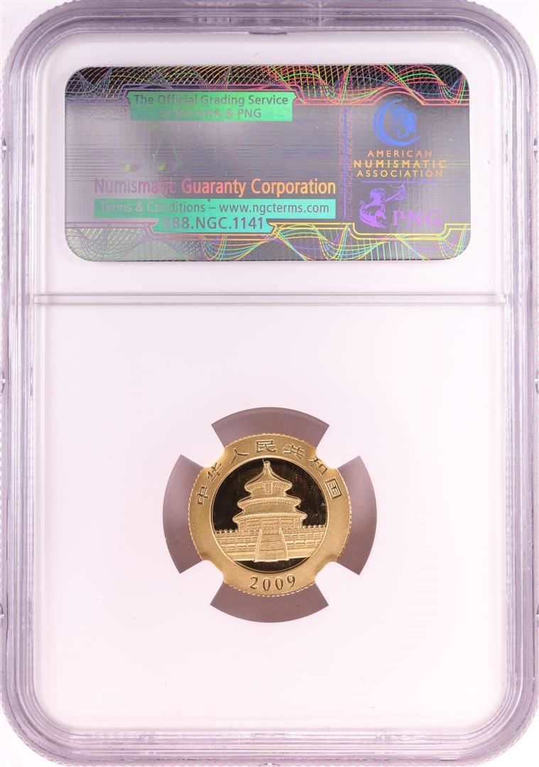 One 2009 China 50 Yuan 1/10 oz Gold Panda Coin NGC MS70. NGC Certified.