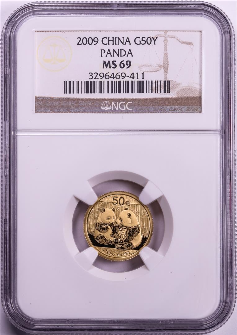 One 2009 China 50 Yuan 1/10oz Gold Panda Coin NGC MS69. NGC Certified.
