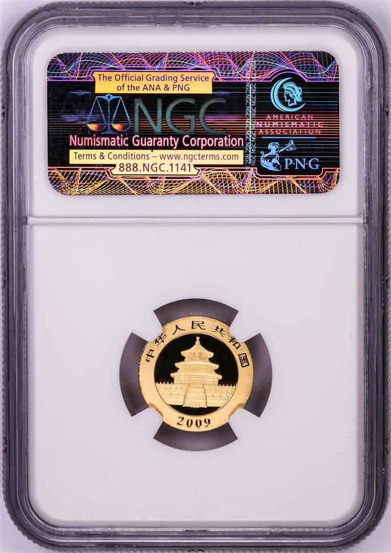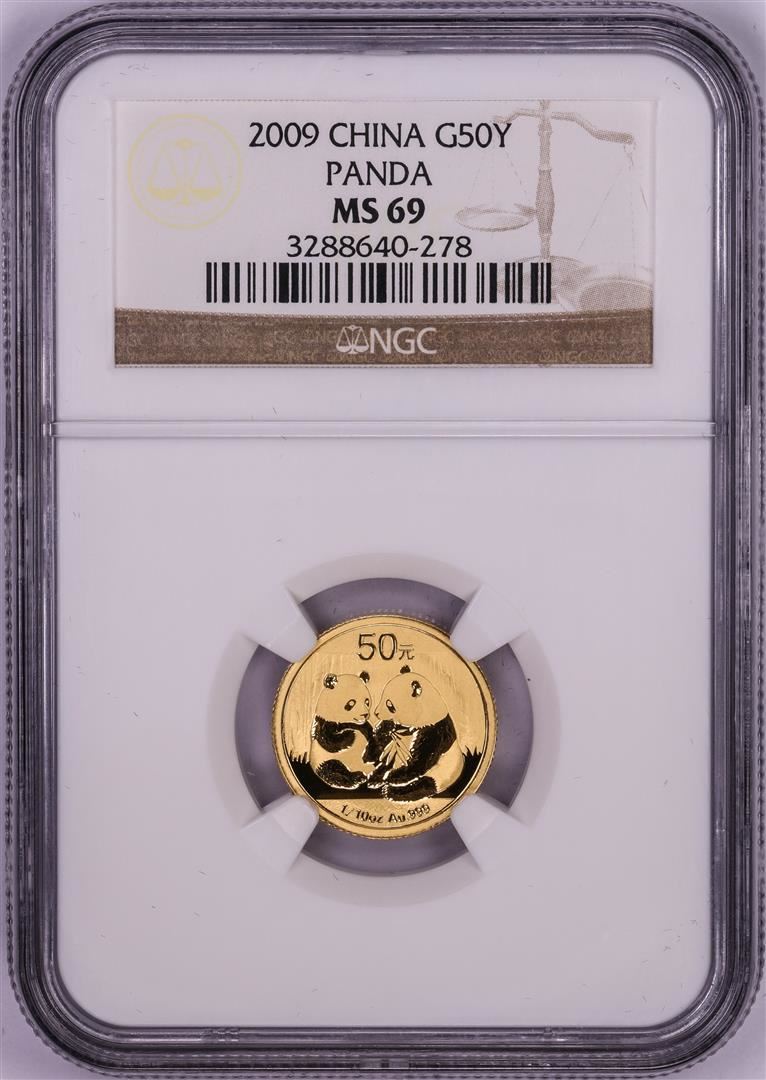 One 2009 China 50 Yuan Panda 1/10 oz. Gold Coin NGC MS69. NGC Certified.