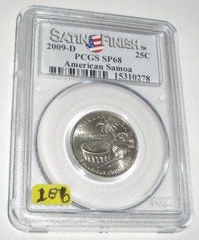 2009-D *AMERICAN SAMOA* Territory Quarter RED BOOK VALUE IS $40.00 *CERTIFIED BY PCGS SATIN FINISH SP68*!! ***Coin, Currency & All Items Listed in this auction - Grades, Conditions and Values are not Safe Deposit Coins LLC Responsibilty. Grades, Condition and Values are determined by Consigner(s) & Buyers ONLY***