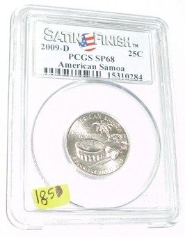 2009-D *AMERICAN SAMOA* Territory Quarter RED BOOK VALUE IS $40.00 *CERTIFIED BY PCGS SATIN FINISH SP68*!! ***Coin, Currency & All Items Listed in this auction - Grades, Conditions and Values are not Safe Deposit Coins LLC Responsibilty. Grades, Condition and Values are determined by Consigner(s) & Buyers ONLY***