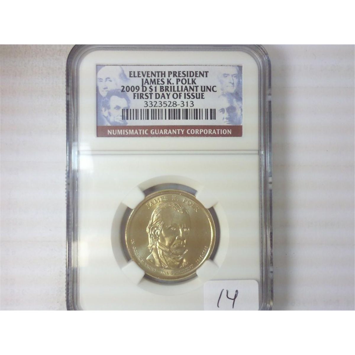 2009-D POKE DOLLAR NGC BU 1ST DAY OF ISSUE
