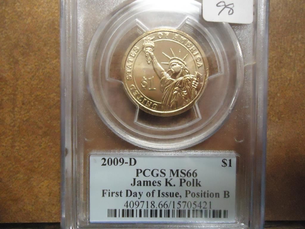 2009-D POLK DOLLAR PCGS MS66 POS. B 1ST DAY ISSUE