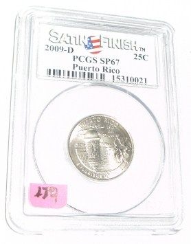 2009-D *PUERTO RICO* Territory Quarter RED BOOK VALUE IS $30.00 *CERTIFIED BY PCGS SATIN FINISH SP67*!! ***Coin, Currency & All Items Listed in this auction - Grades, Conditions and Values are not Safe Deposit Coins LLC Responsibilty. Grades, Condition and Values are determined by Consigner(s) & Buyers ONLY***