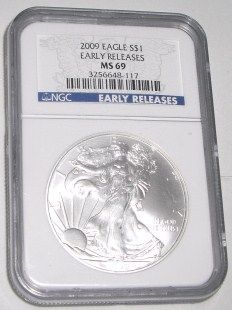 2009 *EARLY RELEASES* CERTIFIED BY NGC MS-69 SILVER EAGLE SERIAL #3256648-117!! SILVER EAGLE CAME OUT OF SAFE!! ***Coin, Currency & All Items Listed in this auction - Grades, Conditions and Values are not Safe Deposit Coins LLC Responsibilty. Grades, Condition and Values are determined by Consigner(s) & Buyers ONLY