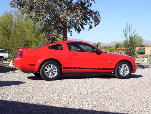 2009 MUSTANG PONY COUPE, 45TH ANNIVERSARY WITH 33K MILES, BUMPER TO BUMPER FACTORY WARRANTY, PLUS 5 YEARS / 60,000 MILE POWERTRAIN WARRANTY. HAS THE ‘MYCOLOR’ FACTORY OPTION WHICH ALLOWS UP TO125 COLOR COMBINATIONS FOR YOUR NIGHT TIME GAGE BACKLIGHTING. ALSO HAS THE ‘AMBIENT’ LIGHTING OPTION WITH A CHOICE OF SEVENCOLORS FOR THE CONSOLE, CUP HOLDERS AND FOOTWELLS. 4.0 LITER 210 HP, 5 SPEED AUTOMATIC, SIX-WAY POWER SEAT,KEYLESS ENTRY, POWER WINDOWS AND LOCKS, EQUIPPED WITH SHORT DROP TINTED GLASS, FACTORY SHAKER 500 WAT UPGRADE STERO W/ 6 CD AND MP3 (A $1,295.00 OPTION), EQUIPPED WITH SIRIUS SATTELITE RADIO, FACTORY A/C DELUXE INTERIOR,REAR END DEFROSTER REAR SPOILER 16’ FACTORY SPOLISHED WHEELS AND ROCH RED TO BOOT. COST $27,000 NEW. COMES WITH ALL THE BOOKS, WARRANTY, SCHEDULED MAINTENCE GUIDE, QUICK REFERENCE AND OWNERS GUIDE.