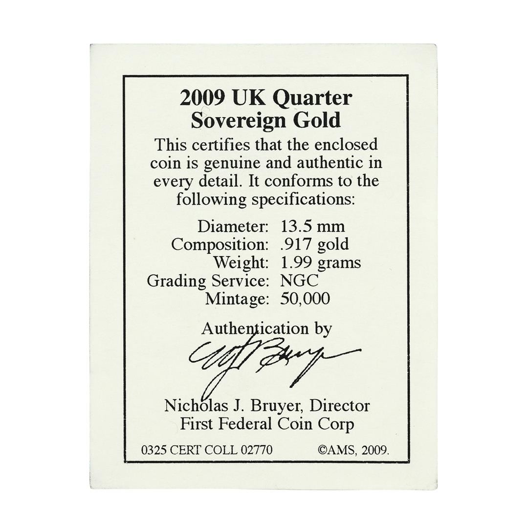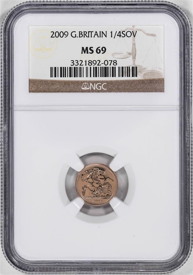 One 2009 Great Britain 1/4 Sovereign Gold Coin NGC MS69. NGC Certified.