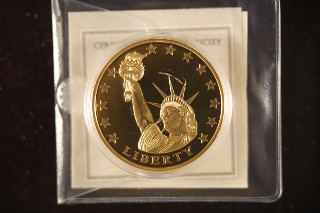 LAYERED PROOF ROUND. 1 1/2" IN SIZE & 1.12 OZ. IN WEIGHT WITH CERTIFICATE