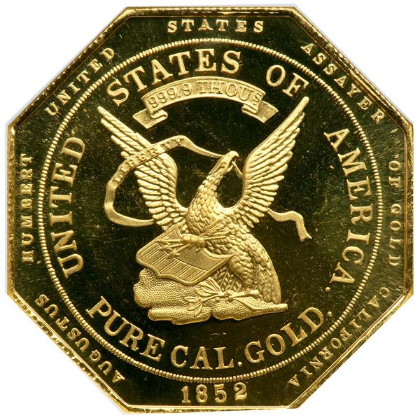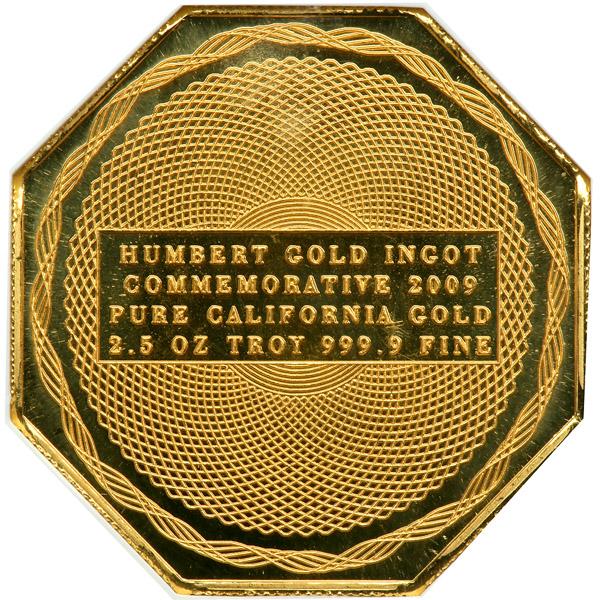 2009 Humbert Commemorative 2.5 Oz. Troy 999.9 Thous. Fine Certified Pure California Gold NGC graded Gem Proof UCAM. Reproduction of a $50 Octagonal Humbert Slug.