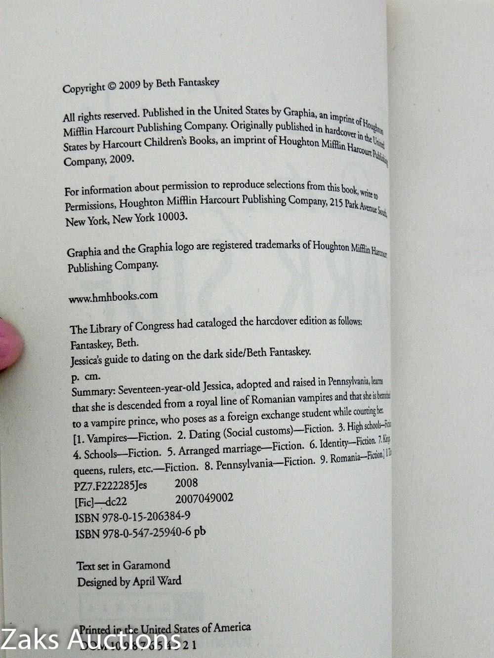 2009 JESSICA'S GUIDE TO DATING ON THE DARK SIDE - BETH FANTASKEY. SOFTCOVER